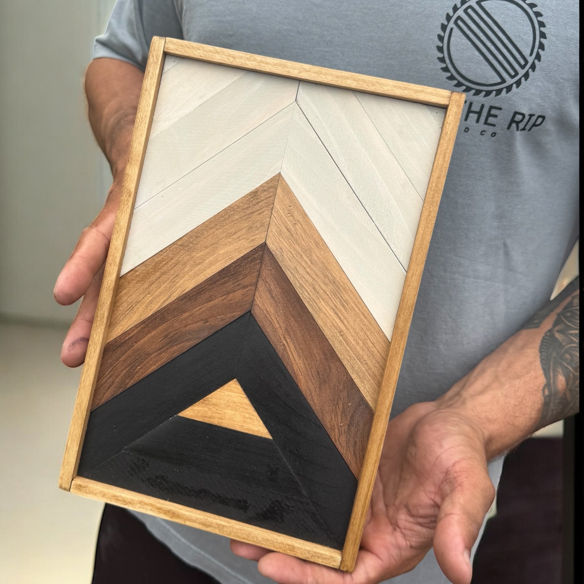 Introducing the "Emmi" - a charming rustic wood mosaic that's perfect for adding a touch of warmth to your shelves or walls. With its natural colors, this small piece is a must-have for any home. Don't miss out!